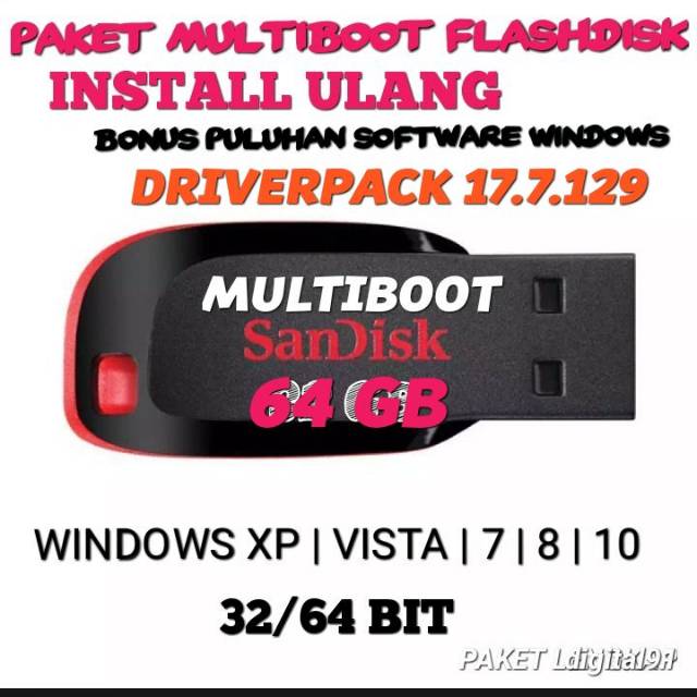 Paket Install Ulang Multiboot Flashdisk 64gb Win Xp 7 8 10 Driverpack Dan Paket Teknisi Komputer Shopee Indonesia