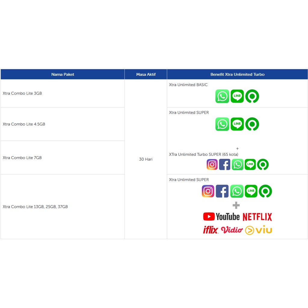XL Xtra Unlimited Turbo merupakan paket Internet Unlimited tanpa FUP Fair Usage Policy di beberapa aplikasi yang sudah di tentukan oleh Provider XL. Terdapat berbagai paket internet murah rp 10 ribuan yang bisa anda pilih mulai dari xtra kuota youtube 2 gb 30 hari xtra kuota. Saat ini XL menghadirkan paket Xtra Combo yang di dalam paket tersebut di bundling kuota Youtube 24 jam hingga 35GB.