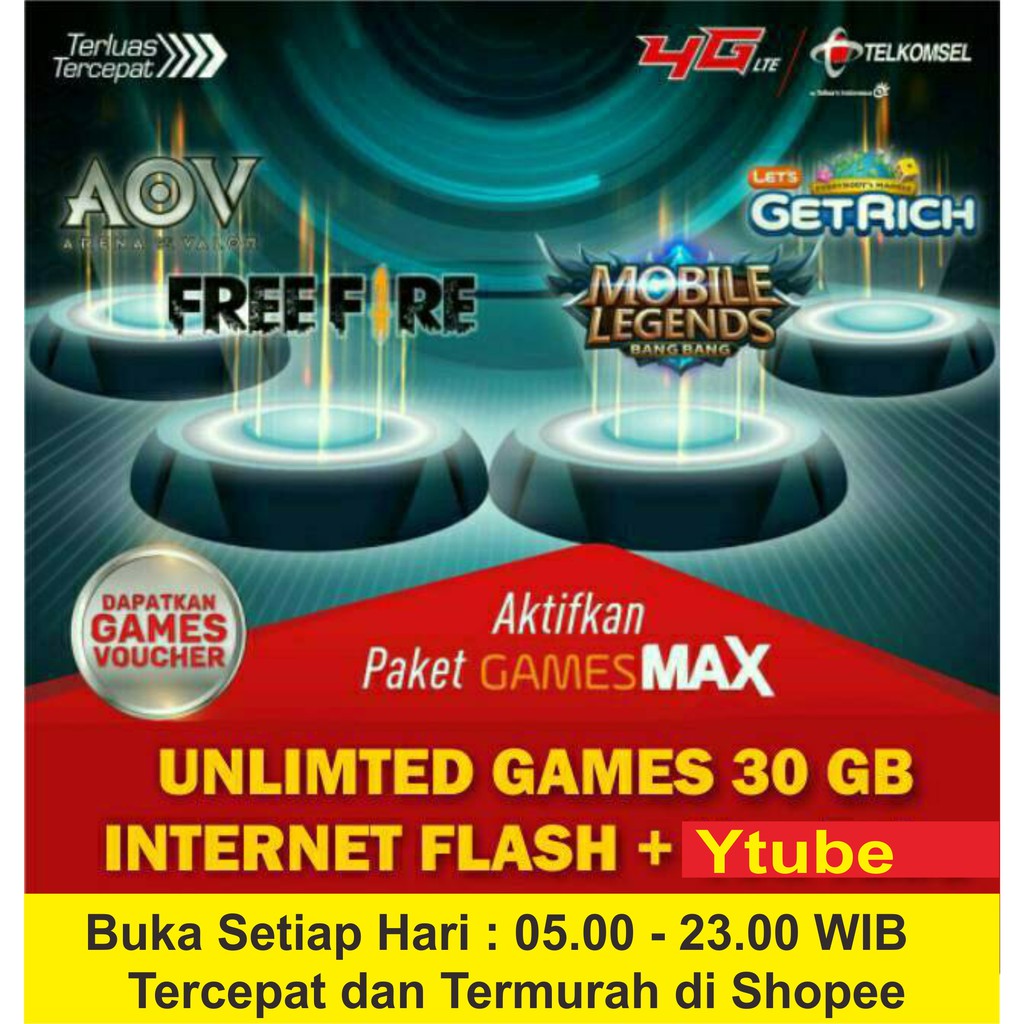 Inject Paket Data Kuota Telkomsel Gamesmax Unlimited 30gb Shopee Indonesia